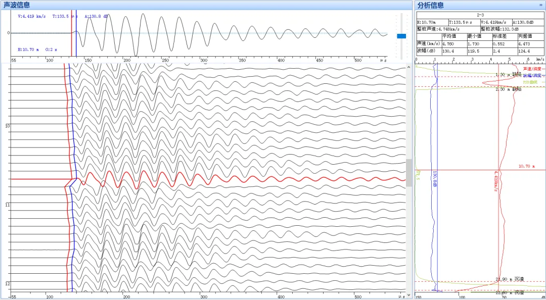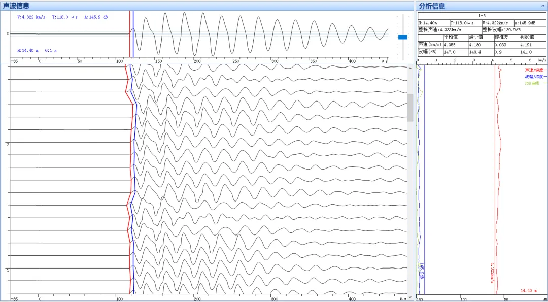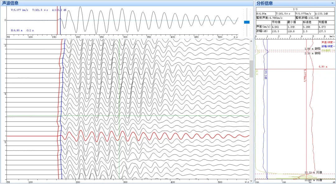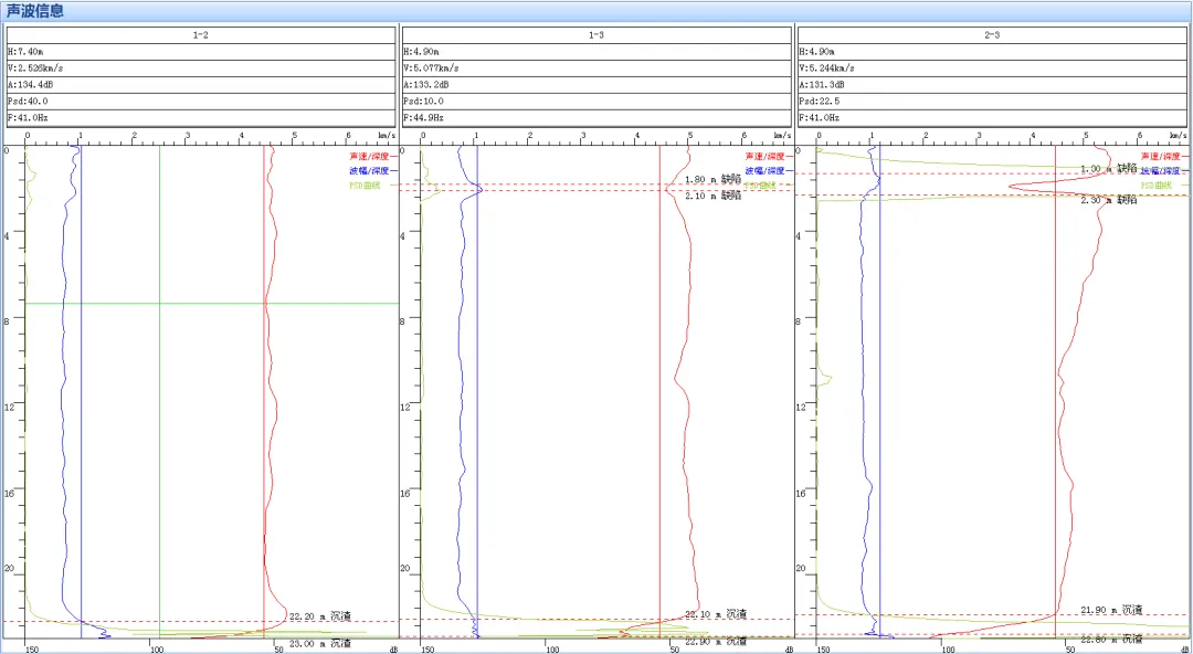 超声波在介质中传播可检测到的参数有:声速、声幅、主频。当混凝土中存在缺陷时,其声速、波幅和频率都会出现明显变化,通过分析,可精准判定桩身混凝土的完整性。常用有以下三种方法: