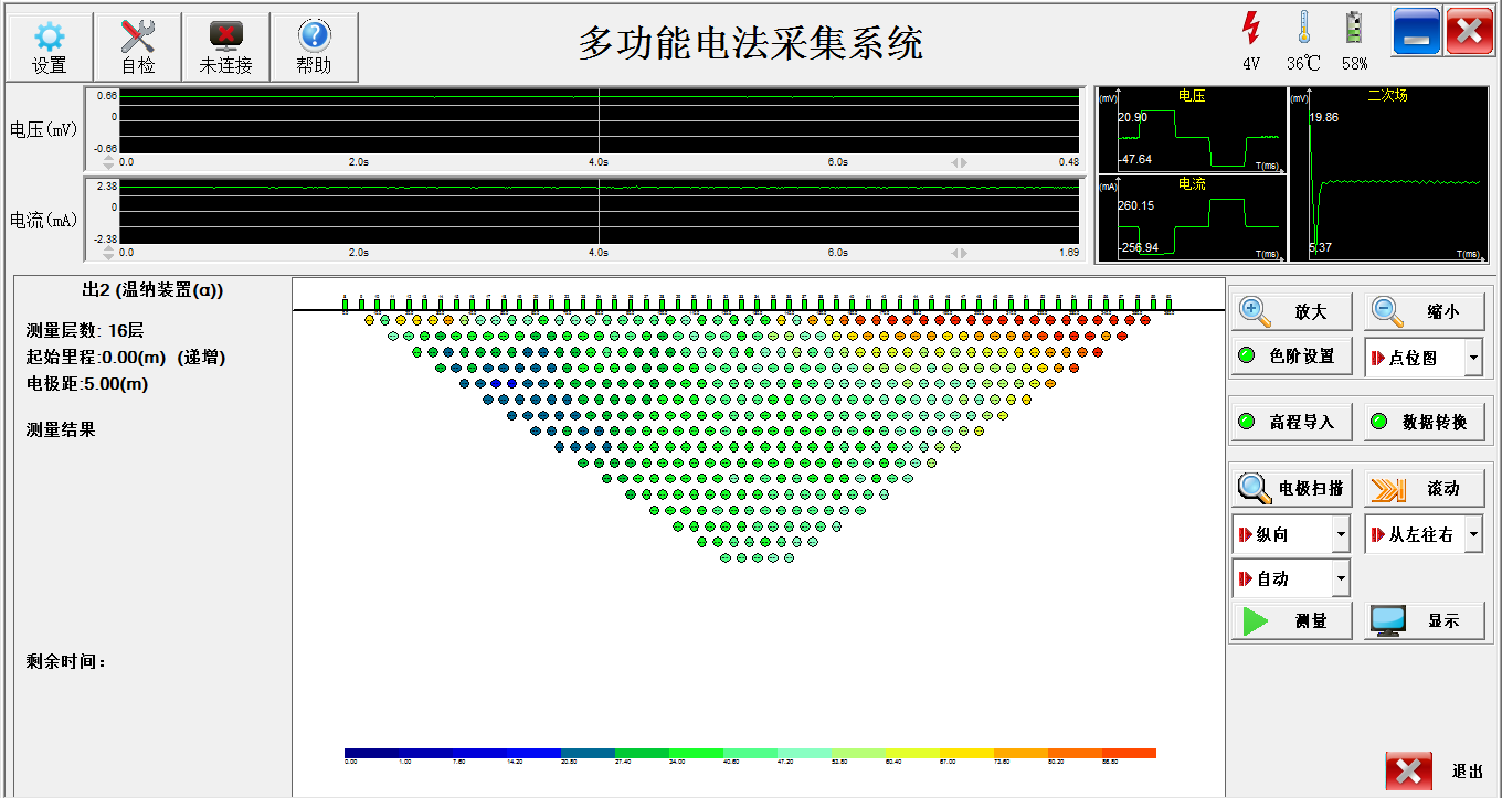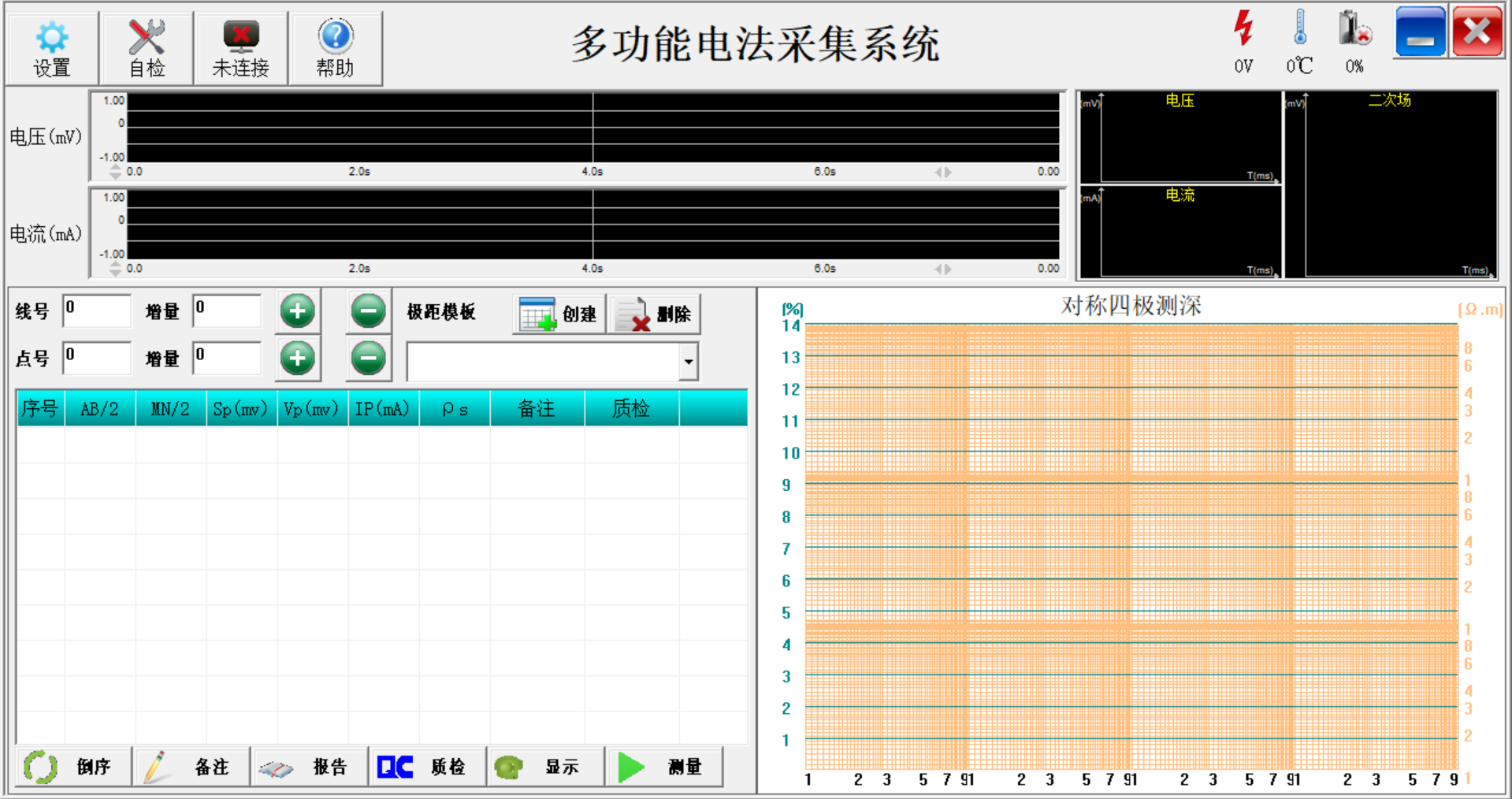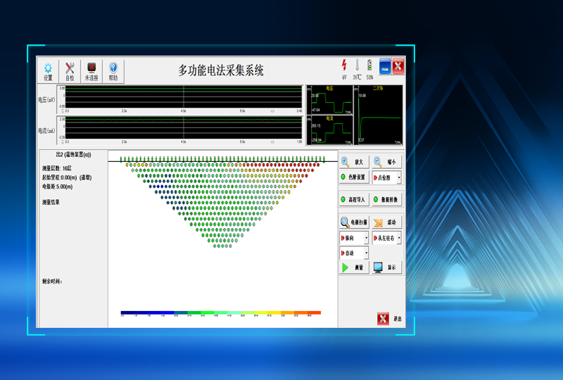 2. 实时数据全波采集功能:系统支持实时显示当前测量的电压和电流波形。操作员可以通过观察波形,判断信号强弱、AB/MN接地是否良好、测量时的背景噪声等。