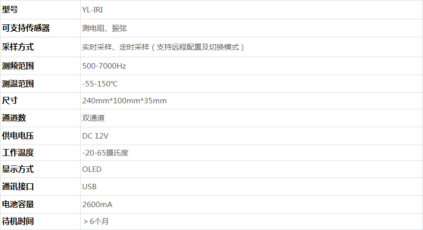 YL-IRI智能手持读数仪适用于各种振弦,差阻传感器信号采集,支持多种温度传感器的测量。广泛应用于土木、交通、地灾、水利、电力、环保等领域构件的应力、应变、压力、位移、温度的测量。