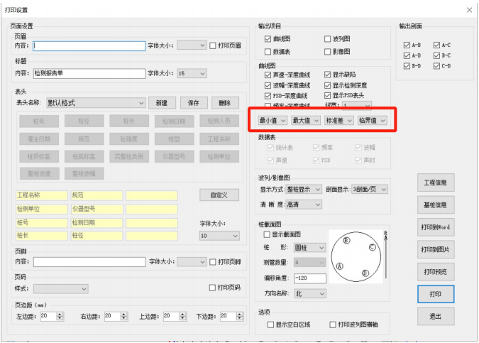 解决方法:在打印设置界面,曲线图设置模块下方,选择对应需输出的表格内容。